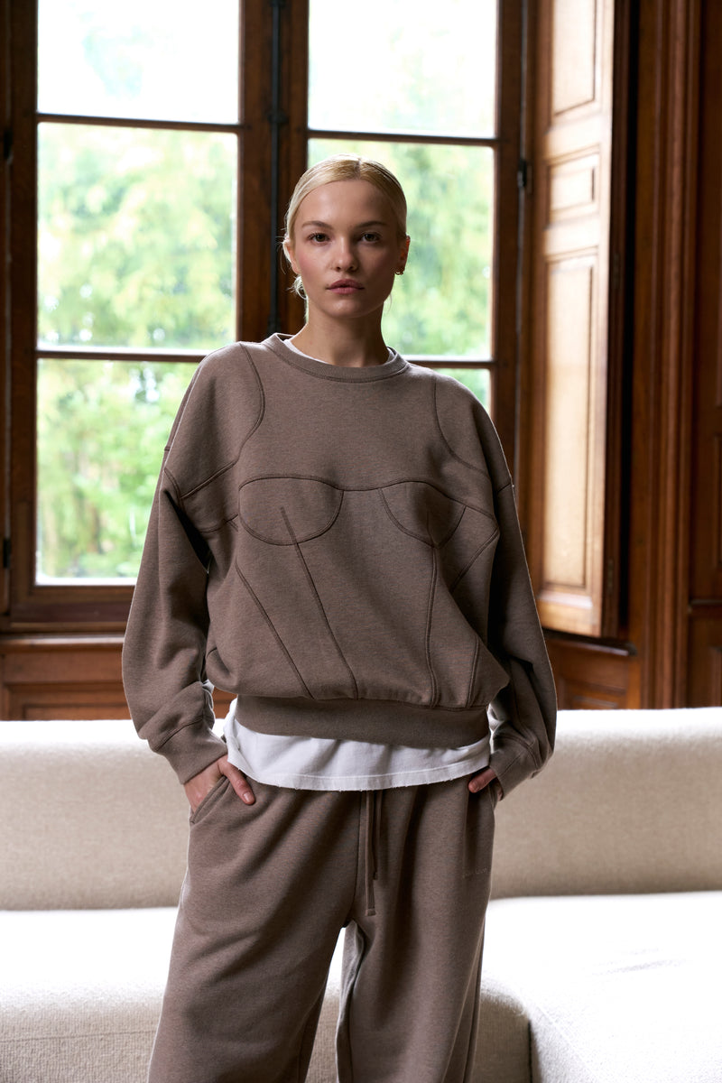 Cotton pieces, defined by their exceptional softness, invite relaxation and moments of stillness. In contrast, tulle designs play with controlled transparency, subtly revealing the body. This season, fleece joggers and oversized sweatshirts expand the wardrobe, introducing an even more relaxed dimension.