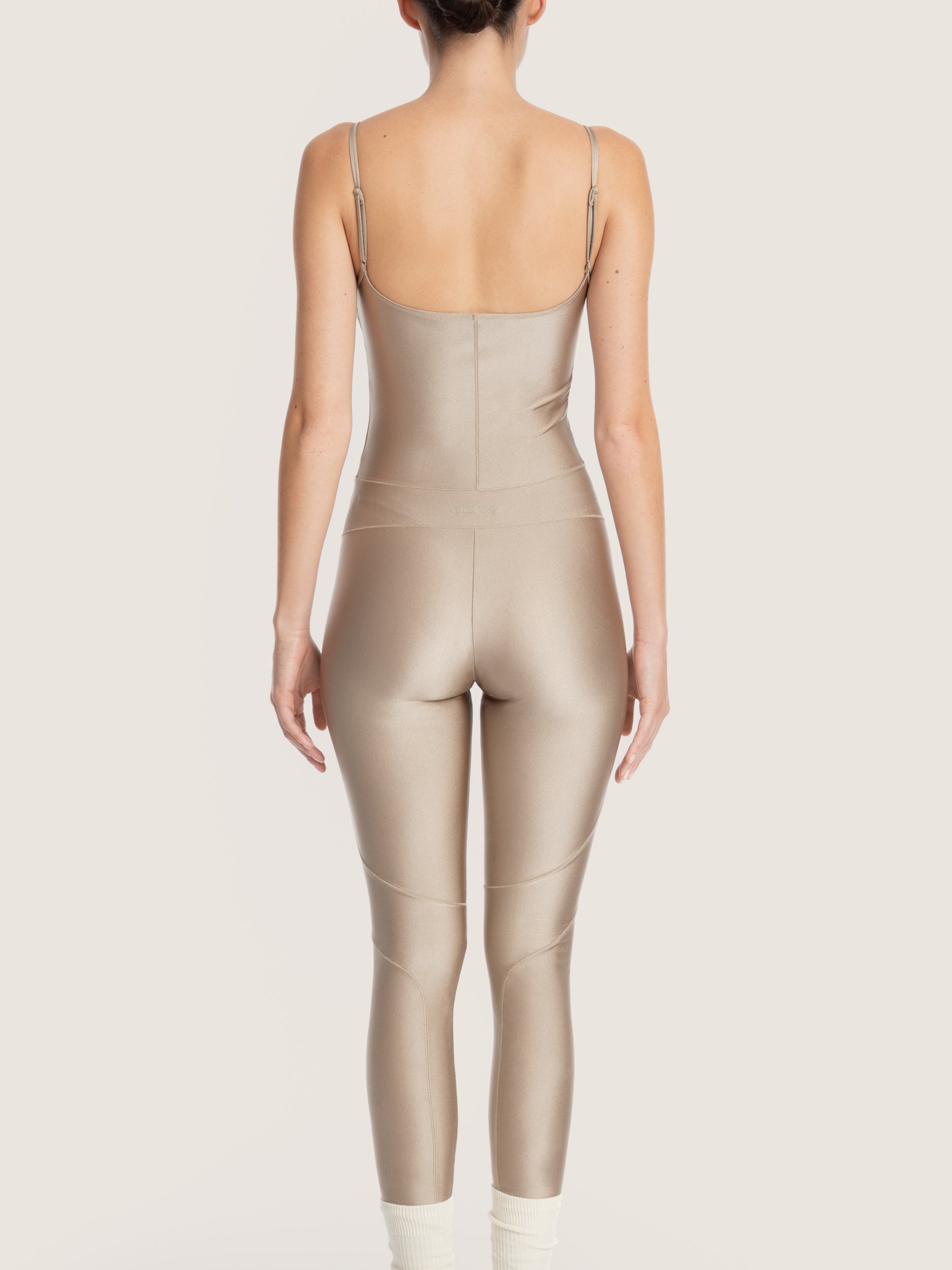 This stretch satin jersey open-back bodysuit sculpts the silhouette with its signature corset cutouts. The straight neckline, thin adjustable straps, and satin fabric offer perfect support and total freedom of movement.