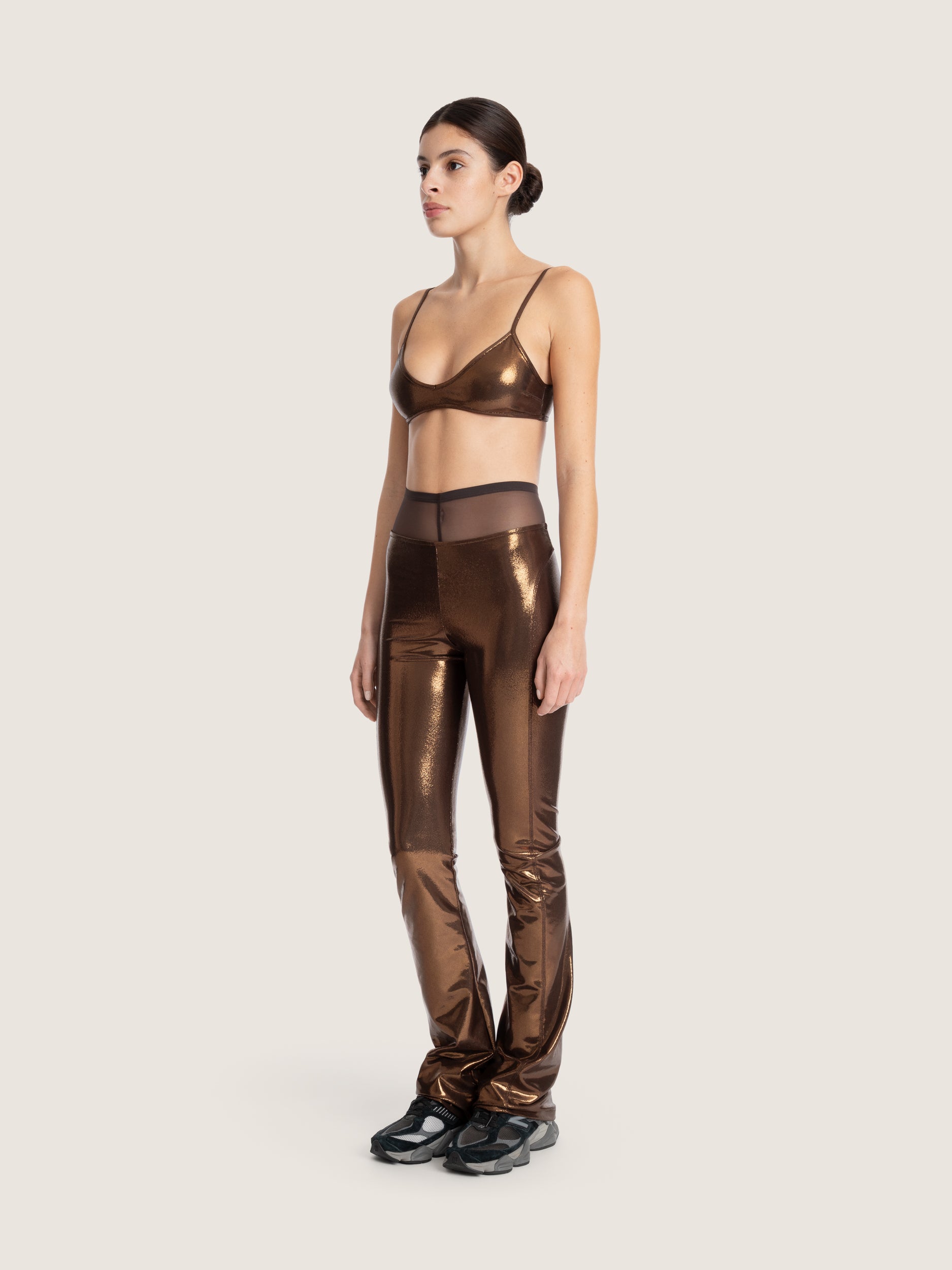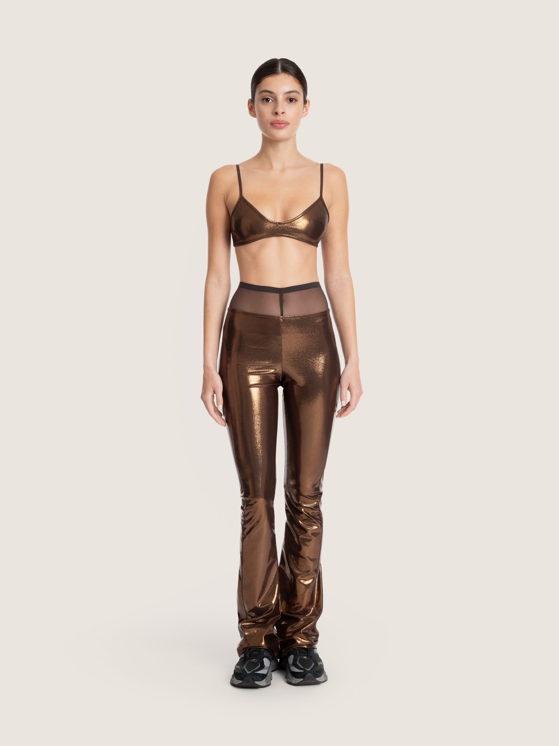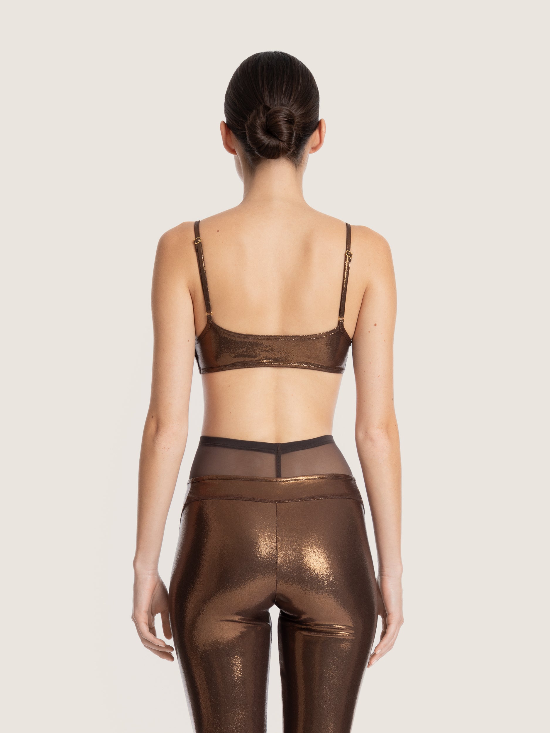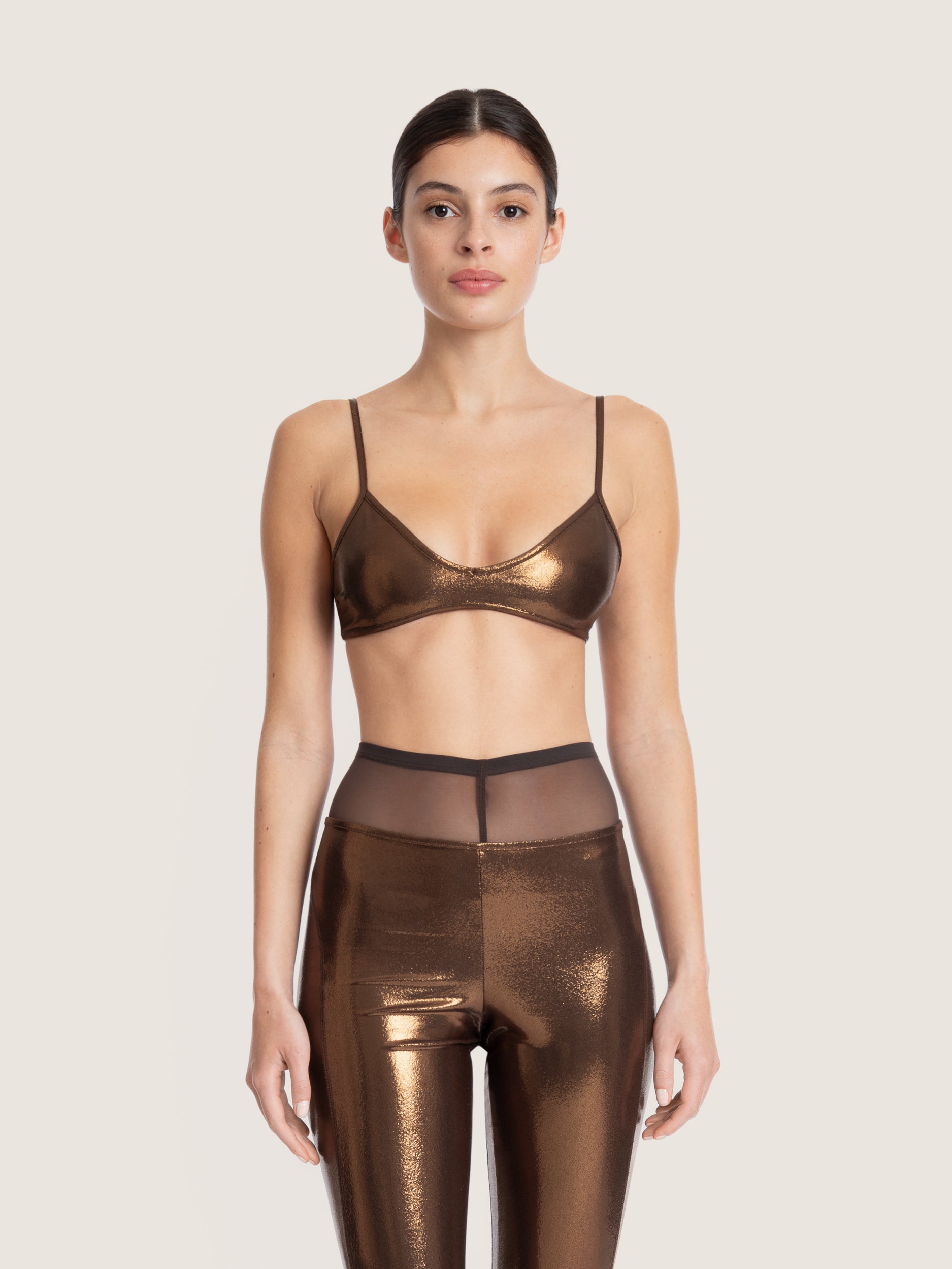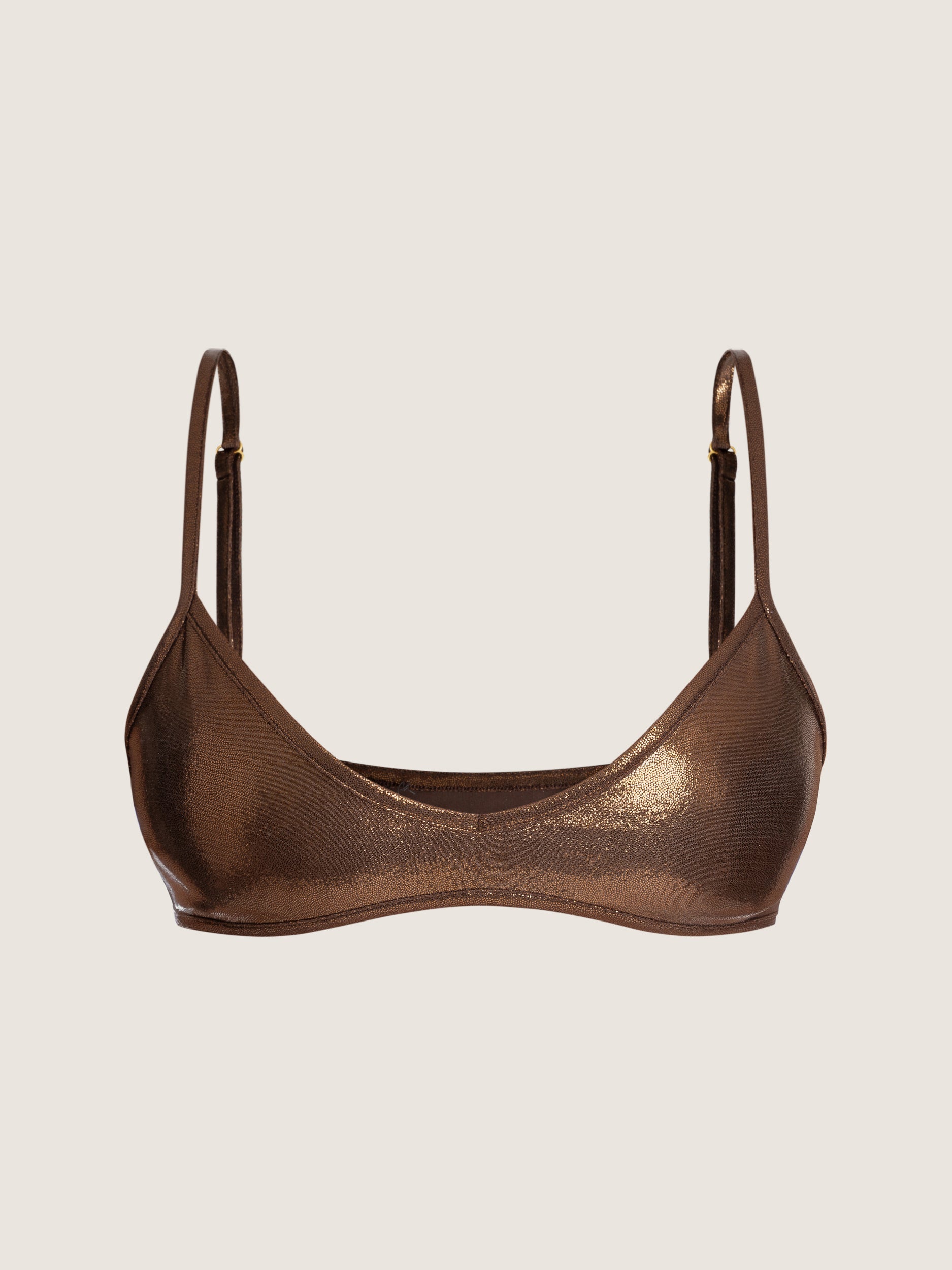 Un haut de bikini lamé, pensé pour capter la lumière et sublimer la silhouette.